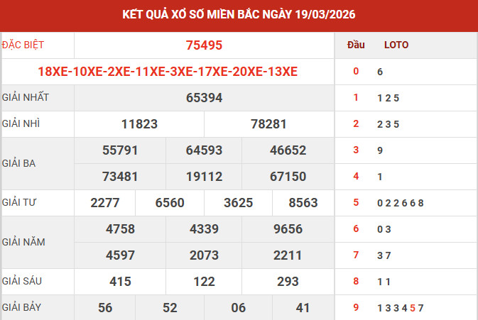 Căn cứ vào bảng kết quả xổ số miền Bắc ngày 19/3/2026 vừa được công bố, các chuyên gia tiến hành tổng hợp và phân tích các số liệu trọng tâm, qua đó mang đến những nhận định chi tiết nhằm hỗ trợ bạn đọc tham khảo và dự đoán XSMB 20/3/2026 một cách hiệu quả.