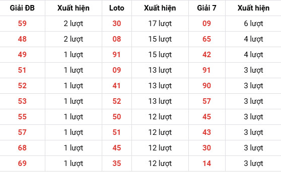 Số tần suất cao toàn bảng: 30, 08, 09.
