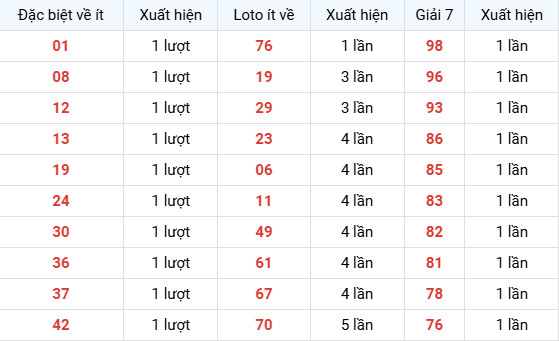 Thống kê đặc biệt, lô tô, giải 7 ít về trong 30' kỳ quay