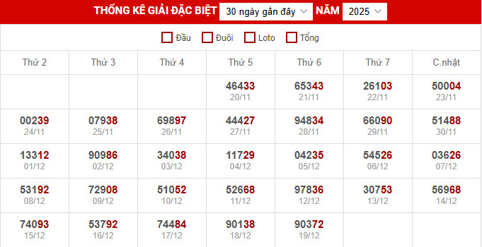 Song song với đó, giải đặc biệt trong suốt 10' tuần gần đây đã được phân tích kỹ lưỡng, giúp phơi bày những quy luật tiềm ẩn. Người chơi khi kết hợp dữ liệu khách quan này với kinh nghiệm cá nhân sẽ có thêm lợi thế trong hành trình tìm kiếm vận may.