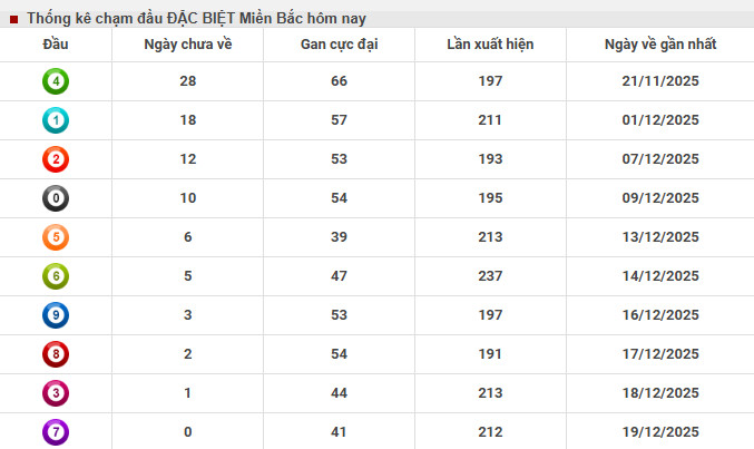 Thống kê chạm đầu đặc biệt XSMB 21/12/2025 hôm nay