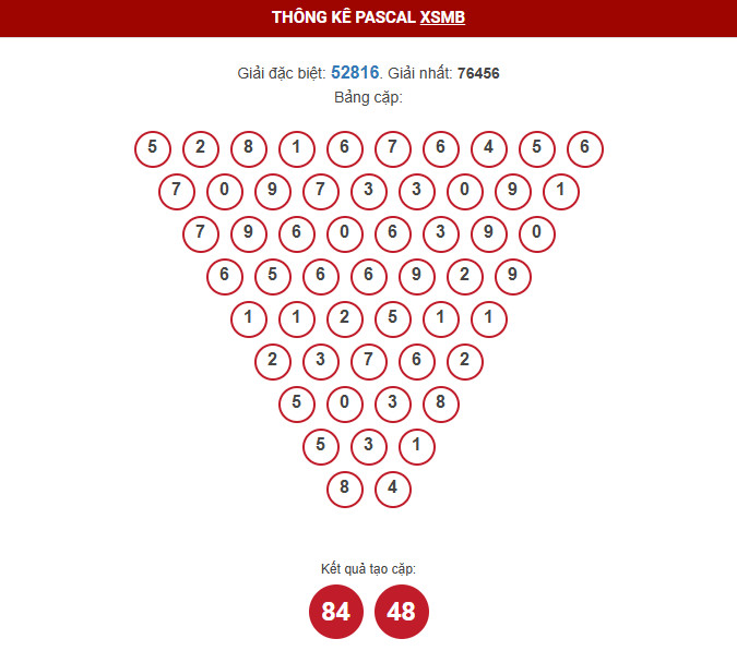 - Dựa vào thống kê Pascal, tham khảo cặp số đặc biệt dễ ra : 84 - 48