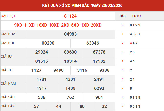 Căn cứ vào bảng kết quả xổ số miền Bắc ngày 20/3/2026 vừa được công bố, các chuyên gia tiến hành tổng hợp và phân tích các số liệu trọng tâm, qua đó mang đến những nhận định chi tiết nhằm hỗ trợ bạn đọc tham khảo và dự đoán XSMB 21/3/2026 một cách hiệu quả.