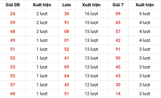 Số tần suất cao toàn bảng: 30, 91, 08, 09.
