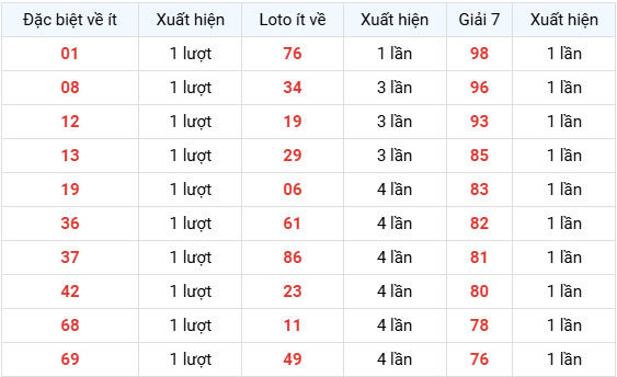 Nhóm Giải 7 xuất hiện ít (1 lần):