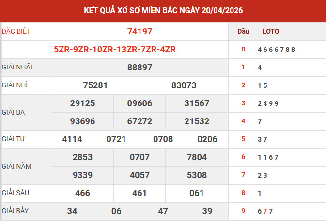 Từ kết quả xổ số miền Bắc ngày 20/4/2026, nhiều dữ liệu quan trọng đã được tổng hợp và xử lý để phục vụ cho việc phân tích. Các chuyên gia dựa vào đó để đưa ra nhận định chi tiết, giúp người chơi có thêm cơ sở khi tham khảo dự đoán XSMB 21/4/2026 một cách hợp lý và có định hướng rõ ràng hơn.