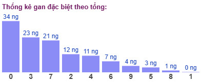 Thống kê cho thấy tổng đề lâu chưa xuất hiện nhất là tổng 3 (bao gồm 10 cặp số: 03, 12, 21, 30, 49, 58, 67, 76, 85, 94) đã 18 ngày chưa ra.
