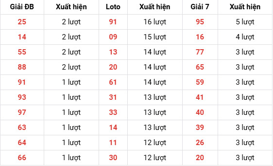 13, 20, 61 (14 lượt) → nhóm tăng trưởng mạnh.