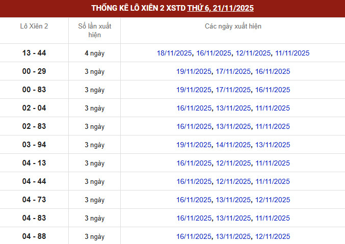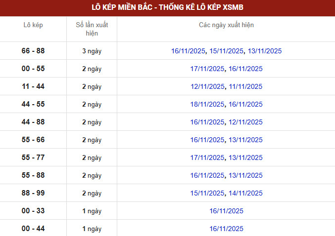 ⇒ Xem thêm: Bảng thống kê tần suất lô miền Bắc chi tiết.