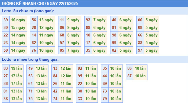 Thống kê miền Bắc nhanh ngày 22/11/2025
