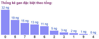 Thống kê cho thấy tổng đề lâu chưa xuất hiện nhất là tổng 0 (bao gồm 10 cặp số: 00, 19, 28, 37, 46, 55, 64, 73, 82, 91) đã 32 ngày chưa ra.
