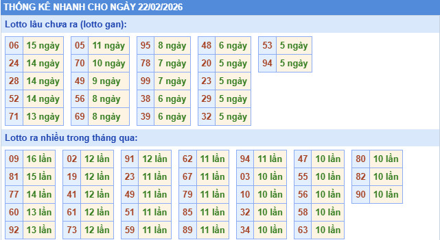 Thống kê – dự đoán XSMB ngày 22/2/2026 Thần Tài hôm nay mang đến cái nhìn tổng quan về XSMB chiều nay, tập trung vào các con số giải đặc biệt, lô có tần suất xuất hiện cao và lâu chưa về sau nhiều kỳ quay. Đây là cơ sở quan trọng để bạn đọc tham khảo khi theo dõi dự đoán XSMB 22/2 và lựa chọn bộ số phù hợp.