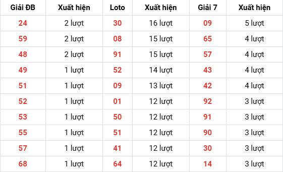 Số tần suất cao toàn bảng: 30, 08, 91, 09.