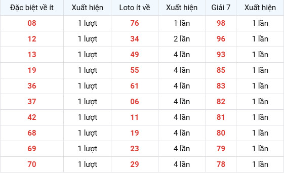 Nhóm Giải 7 xuất hiện ít (1 lần):