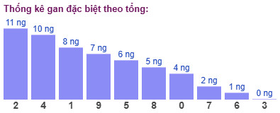 Thống kê cho thấy tổng đề lâu chưa xuất hiện nhất là tổng 2 (bao gồm 10 cặp số: 02, 11, 20, 39, 48, 57, 66, 75, 84, 93) đã 11 ngày chưa ra.