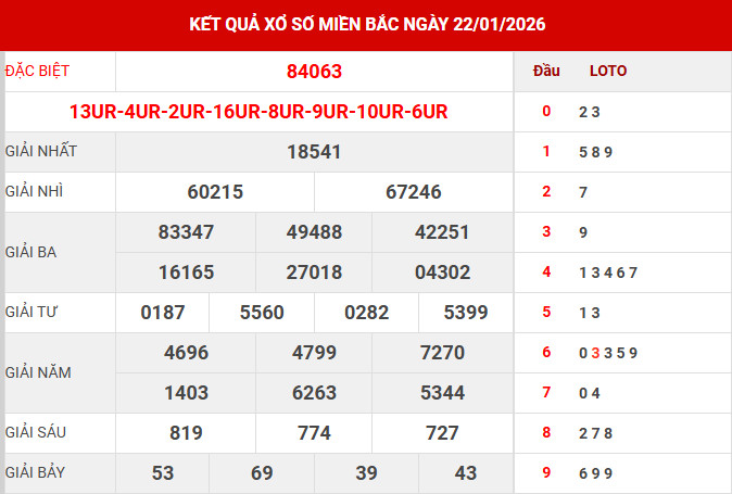 Tham khảo dự đoán xổ số miền bắc 23/1/2026 chuẩn xác, bạn sẽ nhận được các thông tin chi tiết về giải đặc biệt, giải tám, đầu đuôi, bao lô 2 số cũng như các thống kê khác đáng chú ý.