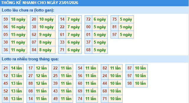 ​Thống kê lô tô miền Bắc nhanh ngày 23/1/2026