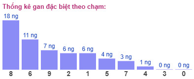 Thống kê cho thấy chạm đề lâu chưa xuất hiện nhất là chạm 8 (bao gồm 19 cặp số có chứa số 8), đã 18 ngày chưa ra.