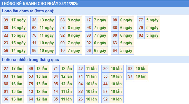 Thống kê miền Bắc nhanh ngày 23/11/2025