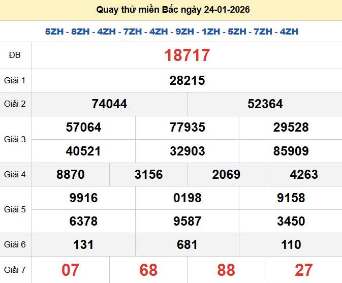 4. Quay thử xổ số miền Bắc ngày 24/1/2026 thứ 7 tối nay chuẩn xác