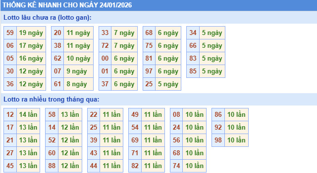 ​Thống kê lô tô miền Bắc nhanh ngày 24/1/2026