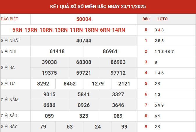 Ngày 22/11/2025, giải đặc biệt của Xổ số Miền Bắc thuộc về dãy số 50004, trong đó cặp 04 là tâm điểm dành cho những ai quan tâm tới các dấu hiệu lặp lại.