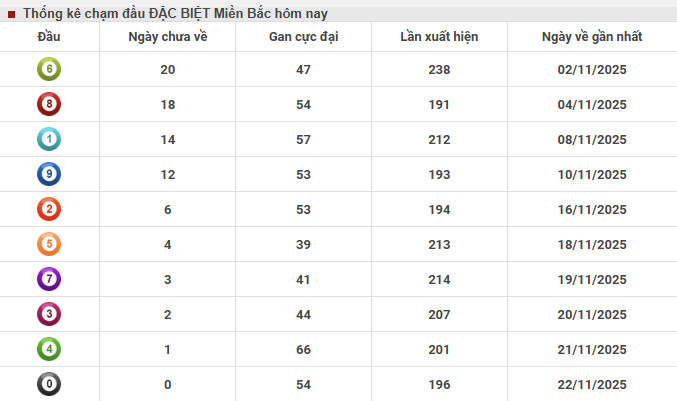 Thống kê chạm đầu đặc biệt XSMB 24/11/2025 hôm nay