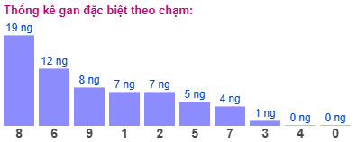 Thống kê cho thấy chạm đề lâu chưa xuất hiện nhất là chạm 8 (bao gồm 19 cặp số có chứa số 8), đã 19 ngày chưa ra.
