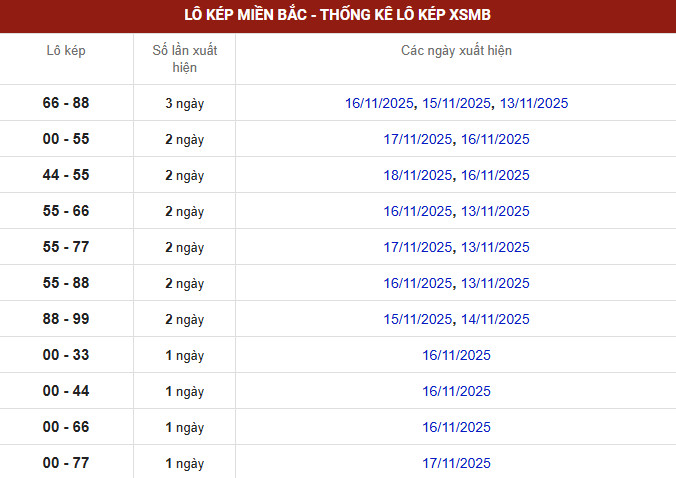 ⇒ Xem thêm: Bảng thống kê tần suất lô miền Bắc chi tiết.