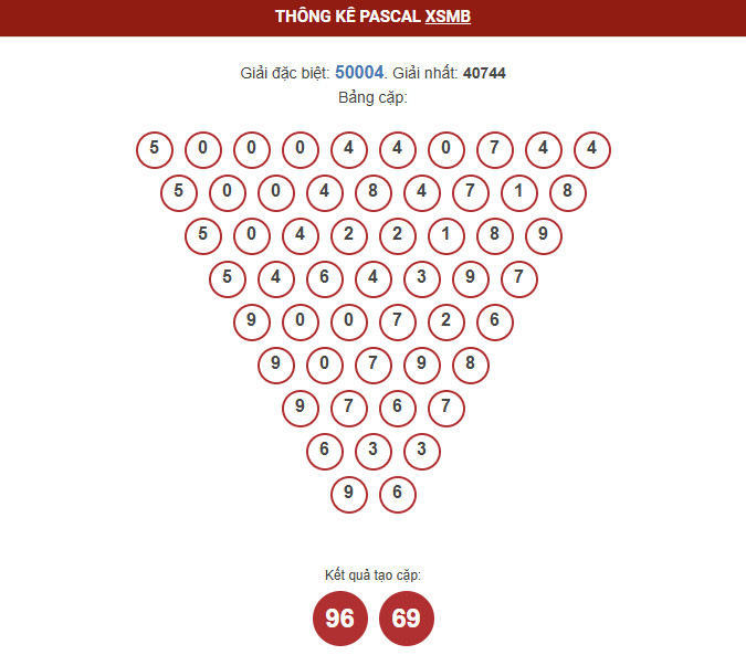 - Dựa vào thống kê Pascal, tham khảo cặp số đặc biệt dễ ra : 96 - 69