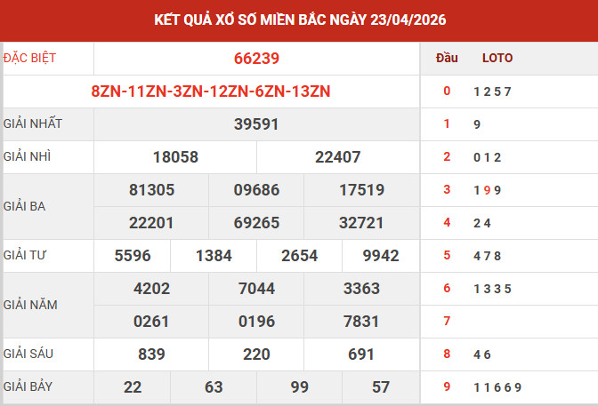 Căn cứ vào bảng kết quả xổ số miền Bắc ngày 23/4/2026 vừa được công bố, các chuyên gia tiến hành tổng hợp và phân tích các số liệu trọng tâm, qua đó mang đến những nhận định chi tiết nhằm hỗ trợ bạn đọc tham khảo và dự đoán XSMB 24/4/2026 một cách hiệu quả.