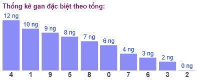 Thống kê cho thấy tổng đề lâu chưa xuất hiện nhất là tổng 4 (bao gồm 10 cặp số: 04, 13, 22, 31, 40, 59, 68, 77, 86, 95) đã 12 ngày chưa ra.
