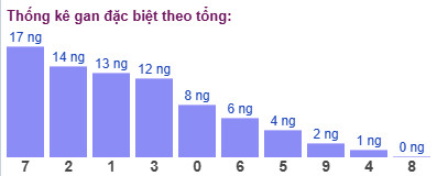 Thống kê cho thấy tổng đề lâu chưa xuất hiện nhất là tổng 7 (bao gồm 10 cặp số: 07, 16, 25, 34, 43, 52, 61, 70, 89, 98) đã 17 ngày chưa ra.