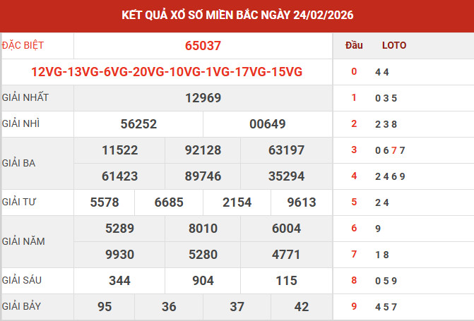 Căn cứ vào bảng kết quả xổ số miền Bắc ngày 24/2/2026 vừa được công bố, các chuyên gia tiến hành tổng hợp và phân tích các số liệu trọng tâm, qua đó mang đến những nhận định chi tiết nhằm hỗ trợ bạn đọc tham khảo và dự đoán XSMB 25/2/2026 một cách hiệu quả.