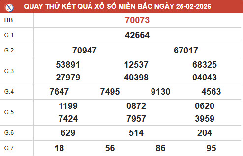 Tham khảo dự đoán xổ số miền bắc 25/2/2026 chuẩn xác, bạn sẽ nhận được các thông tin chi tiết về giải đặc biệt, giải tám, đầu đuôi, bao lô 2 số cũng như các thống kê khác đáng chú ý.