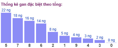 Thống kê cho thấy tổng đề lâu chưa xuất hiện nhất là tổng 5 (bao gồm 10 cặp số: 05, 14, 23, 32, 41, 50, 69, 78, 87, 96) đã 22 ngày chưa ra.