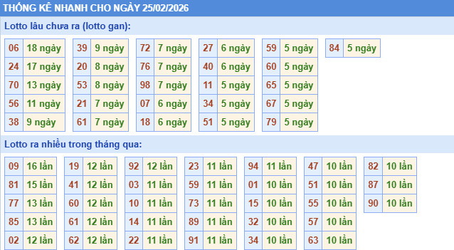 Thống kê – dự đoán XSMB ngày 25/2/2026 Thần Tài hôm nay mang đến cái nhìn tổng quan về XSMB chiều nay, tập trung vào các con số giải đặc biệt, lô có tần suất xuất hiện cao và lâu chưa về sau nhiều kỳ quay. Đây là cơ sở quan trọng để bạn đọc tham khảo khi theo dõi dự đoán XSMB 25/2 và lựa chọn bộ số phù hợp.