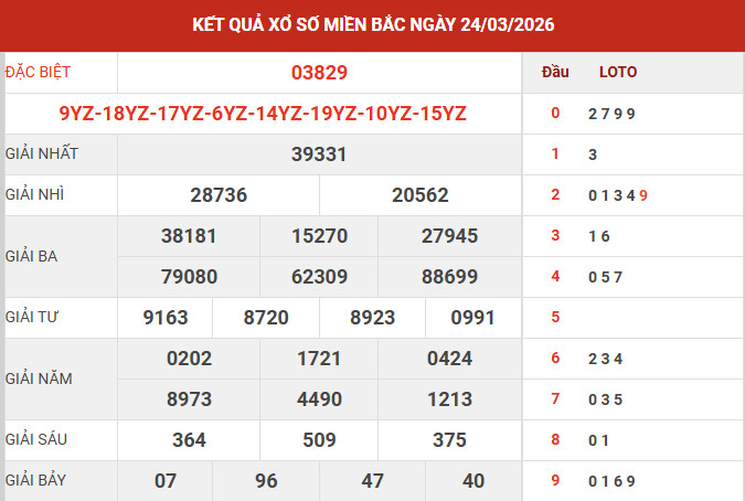 Căn cứ vào kết quả xổ số miền Bắc ngày 24/3/2026 vừa được công bố, các chuyên gia đã tiến hành tổng hợp dữ liệu và phân tích các chỉ số quan trọng.