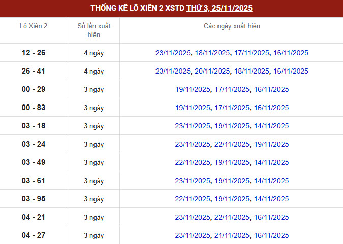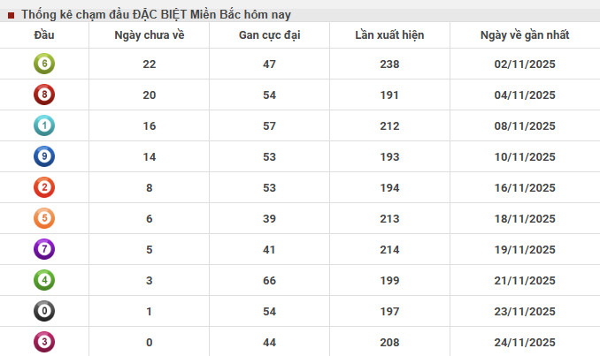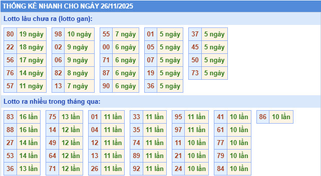 Thống kê miền Bắc nhanh ngày 26/11/2025
