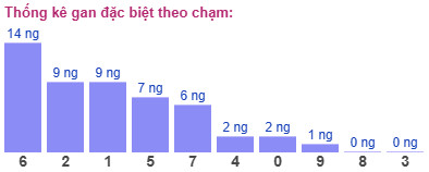Thống kê cho thấy chạm đề lâu chưa xuất hiện nhất là chạm 6 (bao gồm 19 cặp số có chứa số 6), đã 14 ngày chưa ra.