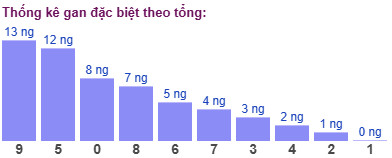 Thống kê cho thấy tổng đề lâu chưa xuất hiện nhất là tổng 9 (bao gồm 10 cặp số: 09, 18, 27, 36, 45, 54, 63, 72, 81, 90) đã 13 ngày chưa ra.