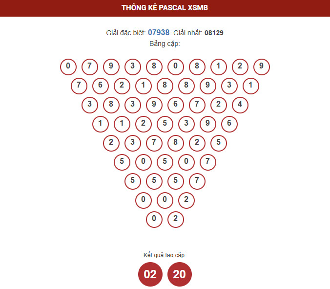 - Dựa vào thống kê Pascal, tham khảo cặp số đặc biệt dễ ra : 02 - 20