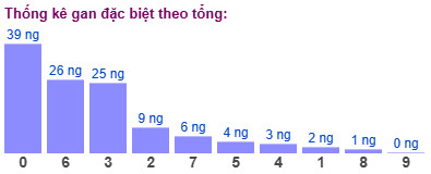 Thống kê cho thấy tổng đề lâu chưa xuất hiện nhất là tổng 0 (bao gồm 10 cặp số: 00, 19, 28, 37, 46, 55, 64, 73, 82, 91) đã 39 ngày chưa ra.