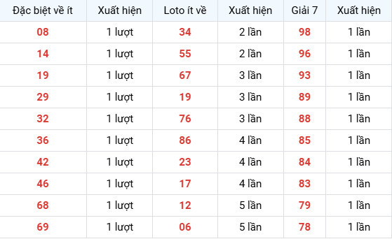 Thống kê đặc biệt, lô tô, giải 7 ít về trong 30' kỳ quay