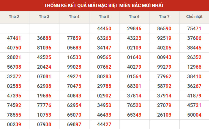 Thống kê giải đặc biệt 10' tuần gần đây