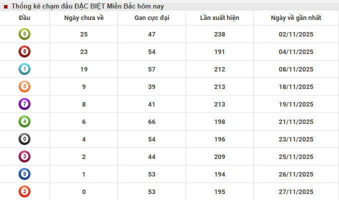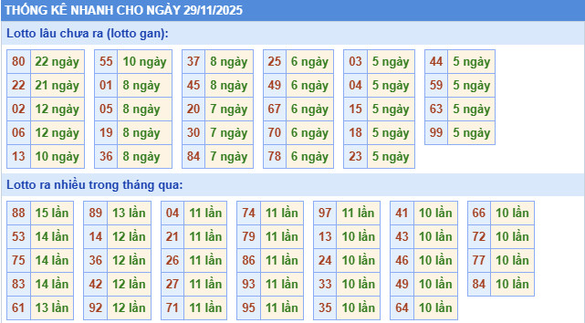Thống kê miền Bắc nhanh ngày 29/11/2025