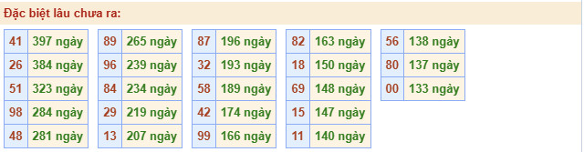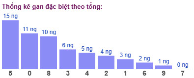 Thống kê cho thấy tổng đề lâu chưa xuất hiện nhất là tổng 5 (bao gồm 10 cặp số: 05, 14, 23, 32, 41, 50, 69, 78, 87, 96) đã 15 ngày chưa ra.