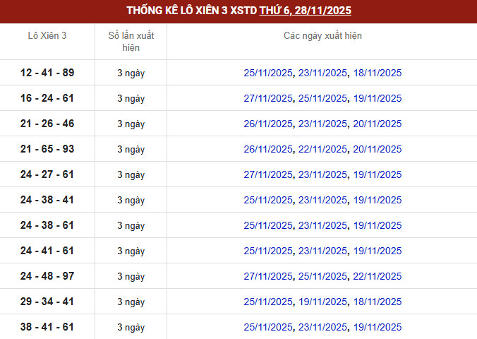 - Xiên 3: (26‑93-75)(41‑12-21)(24‑33-38)