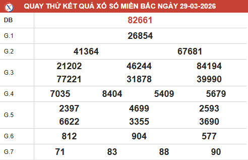 Kết quả xổ số miền Bắc ngày 29/3/2026 là cơ sở quan trọng để các chuyên gia tiến hành phân tích dữ liệu và nhận định xu hướng. Thông qua đó, người chơi có thể tham khảo các thông tin hữu ích nhằm đưa ra dự đoán XSMB 29/3/2026 phù hợp với thực tế.