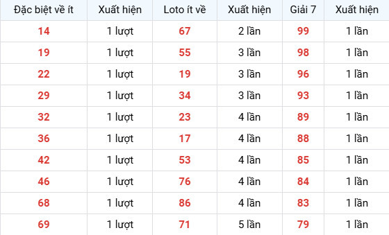 67 (2 lần) → ít xuất hiện nhất, đáng chú ý.